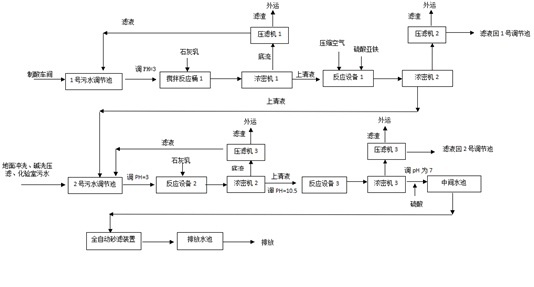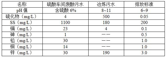 河北石家莊某鉛鋅冶煉廠,其廢水主要分為兩種,一是冶煉污水,即冶煉工藝生產(chǎn)中排出的堿式壓濾機排污水、地面沖洗水及化驗室洗手池排水等,每日污水為500噸,呈堿性,并含有大量重金屬離子;二是硫酸車間排出污水,每日污水量為300噸,呈強酸性,同樣含有大量的重金屬離子。
